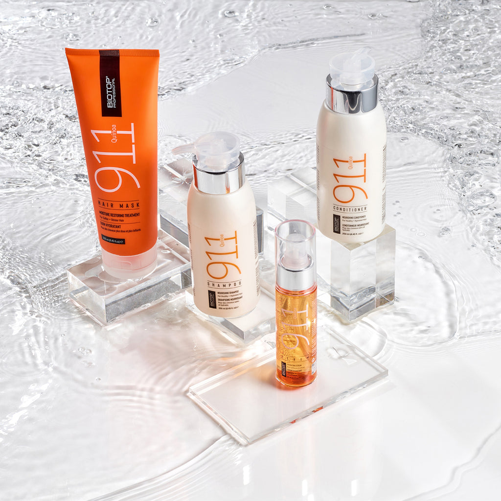 סדרת BIOTOP 911 מבית ביוטופ פרופשיונל נועדה לטפל בשיער שעבר נזקים חמורים כתוצאה מהחלקות, צבע, הבהרות, שימוש במכשירים חמים או חשיפה לשמש. מוצרי הסדרה מועשרים בתמציות טבעיות, שמנים חיוניים, וויטמינים המחזקים את סיב השערה ומשיבים לה את החיוניות והברק הטבעי.